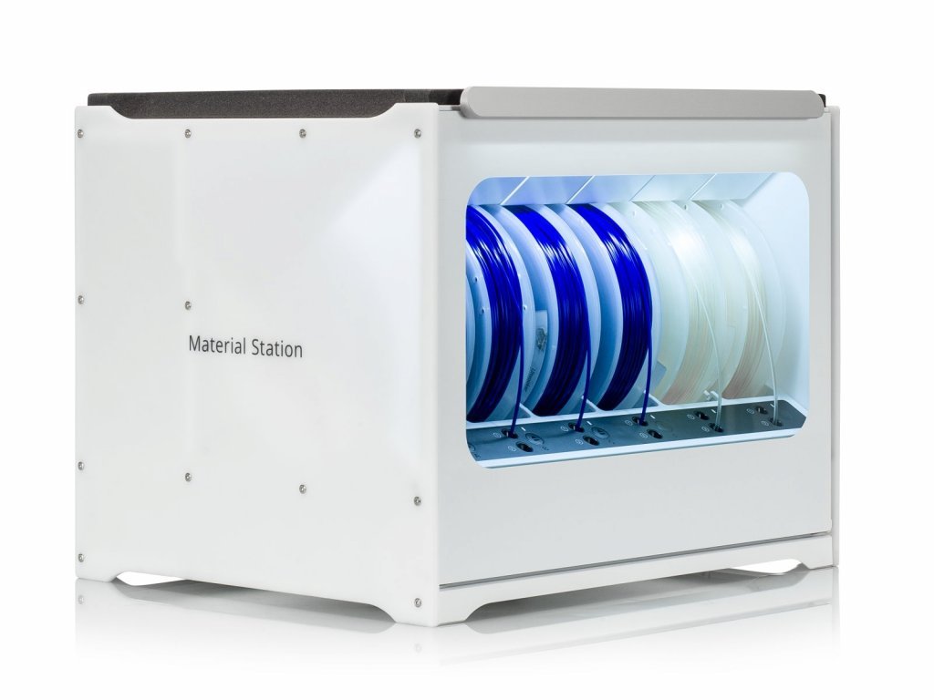 UltiMaker Material Station od základov mení spôsob práce s materiálom pre 3D tlač a otvára cestu k nepretržitej prevádzke. Do komory s riadenou vlhkosťou môžete umiestniť až 6 cievok a šikovné funkcie sa postarajú o zvyšok. Spoľahnúť sa môžete na podávací mechanizmus dostatočne odolný aj pre kompozitá, čidla tlačovej struny a automatické prepínanie medzi materiálmi, keď niektorý z nich dôjde. Získate vyššiu produktivitu a kvalitu výtlačkov. Vývojári Ultimakeru, ktorí sa snažia uľahčiť stolnú 3D tlač už od roku 2011, sami označujú Material Station za celkom zásadný krok. Materiály teraz môžete pohodlne založiť spredu a nebáť sa o ich navlhčenie. Material Station je navyše plne prepojená se softwarem pre prípravu 3D tlače, takže máte vždy prehľad a môžete sa sústrediť na dôležitú prácu.