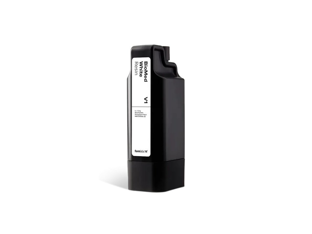 Tuhý materiál pre biokompatibilné aplikácie vyžadujúce dlhodobý kontakt s kožou (> 30 dní) alebo krátkodobý kontakt s kosťou, tkanivom, zubovinou a sliznicou (< 24 hodín). Diely vytlačené zo živice BioMed White Resin sú kompatibilné s bežnými metódami dezinfekcie a sterilizácie rozpúšťadlami.Živica BioMed White Resin sa vyrába v prevádzke Formlabs registrovanej u FDA a certifikovanej podľa normy ISO 13485, je tiež certifikovaná podľa USP triedy VI, čo ju robí vhodnou pre farmaceutické aplikácie a aplikácie na podávanie liečiv.